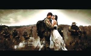 灰暗的天空下,身穿潔白婚紗的新娘與新郎緊緊相擁,但他們倆身后卻是硝煙彌漫的戰(zhàn)場,戰(zhàn)士們?nèi)蔽溲b、手持沖鋒槍,表情嚴(yán)肅地往前沖。戰(zhàn)爭婚照,只有80后敢把戰(zhàn)爭、血腥、悲劇和婚紗聯(lián)系在一起。80后生長在網(wǎng)絡(luò)信息時(shí)代,他們總能從網(wǎng)上獲取最新的信息,從而向攝影師提出各種各樣的要求!八晕覀円惨粩鄤(chuàng)新,緊跟著潮流走,才能滿足消費(fèi)者的需求!苯裆屑s的經(jīng)理王軍告訴記者。