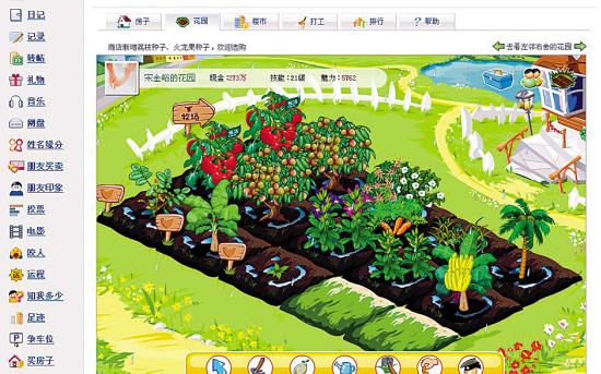 顯然,這個(gè)將聊天、游戲和即時(shí)記錄、博客的功能融為一體的網(wǎng)站,已經(jīng)吸引了不少25-35歲之間的年輕人。于是,在廣州,在深圳,在北京,在上海,在成都,白領(lǐng)圈子里經(jīng)常會(huì)聽到很多人這樣打招呼:“今天你偷菜了嗎?”有調(diào)查顯示,開心網(wǎng)的日均瀏覽量能達(dá)到70萬次以上,成了許多人熱捧的交友網(wǎng)站之一;調(diào)查還顯示,“偷菜”成為開心網(wǎng)上最搶手的游戲,讓人“欲罷不能”。