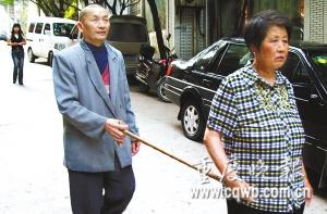 來自忠縣忠州鎮(zhèn) “慢點,這兒有個溝溝。”6月15日上午,忠縣忠州鎮(zhèn)健康路,58歲的牟世華(化名)拉著拐棍走在前邊,后面是雙目失明的樂邦忠(如圖)。11年來,鄰居們很羨慕這對恩愛夫妻。其實,1997年,牟世華曾與樂邦忠離婚,并有了新家。一年后,因樂邦忠雙目失明,牟世華又離婚回到了他身邊。