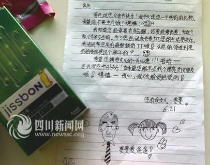 記者詳細查看該帖發(fā)現(xiàn),在這篇名為《父親節(jié)收到讀初中的女兒送的禮物竟然是安全套》的帖子中,發(fā)帖者還附上了避孕套的圖片和女兒的親筆信。圖片上,女兒稚嫩的字跡清晰可見,文末還配上了象征父親和女兒的素描漫畫。