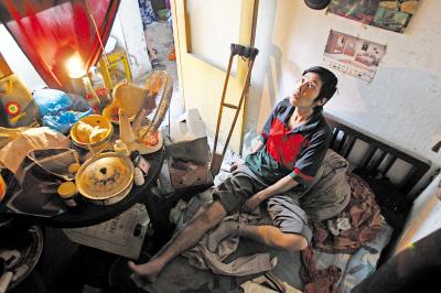 王征說,自母親去世后,他小學(xué)沒畢業(yè)就開始在外打零工,幫人洗過車,也擺過小攤,收入不多,每個(gè)月都只有幾百塊,但王征表示,雖然3平米的房間不寬敞,但有了個(gè)棲身之地,不用擔(dān)心房租,他的收入便夠“糊口”。