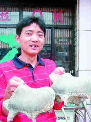 在汽車南站附近的一個茶館里,當廖海兵把這雙鞋拿出來展示時,旁邊的人都圍了過來。一個“80后”的女孩聽說這是150多歲的老木屐,好奇地脫了鞋子穿上試了試!昂么﹩?”姑娘笑答:“好重,我怕走起來會往前面栽!庇浾哂檬值嗔说啵@雙鞋差不多有2公斤重。廖海兵說:“以前的人都穿布鞋,怕打濕了腳,就把木屐套在外面穿,等于是穿兩雙鞋走路!(實習生 李欣 記者李霞)