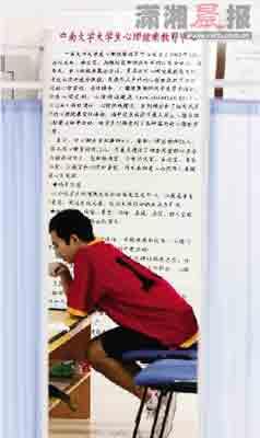 9月9日下午,中南大學(xué)迎新總站,心理健康教育中心的宣傳標(biāo)語(yǔ)非常醒目,大學(xué)生的心理健康越來(lái)越受到重視。圖/記者殷建軍