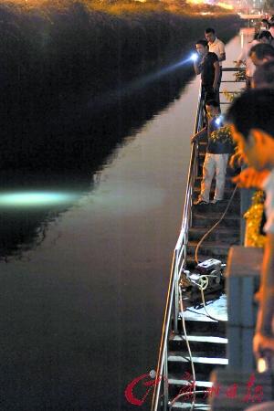 前晚8時(shí)許,瀾石大涌岸邊異常熱鬧。一小時(shí)前,一對(duì)情侶從此跳了下去。70多歲的周伯說,他看到一對(duì)男女突然跑向?yàn)懯笥,“女子好像還蹭了男子兩下,然后就直奔河涌,跳了下去。接著后面的男子也跟著跳了下去。”