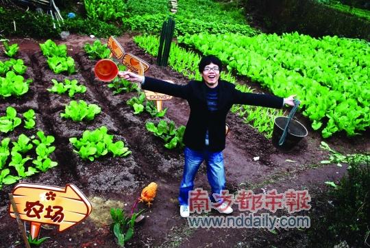 長五六米,寬三米多,整齊地種著幾畦綠油油的芥菜,“農(nóng)場”的邊緣插著很卡通的牌子,上面畫著可愛的心形圖案,下面寫著“Eking”,似乎是在表明農(nóng)場的“主權(quán)”。此外,這個迷你現(xiàn)實版的開心農(nóng)場里還種著兩株仙人掌,而為了契合“農(nóng)場”這個主題,甚至還還放養(yǎng)了一只老母雞。小任說,這塊菜地是附近程介村村民吳阿姨的。小任和吳阿姨素不相識,吳阿姨也搞不懂什么開心農(nóng)場,但聽說他是為挽回女朋友的心,當(dāng)即表示可以把這一小塊菜地?zé)o償借給小任使用。吳阿姨告訴記者,這塊位于天河區(qū)員村四橫路的菜地馬上就要被征用了,借給小任用一下也無所謂,只是她沒想到,改造的“工程量”還很大。