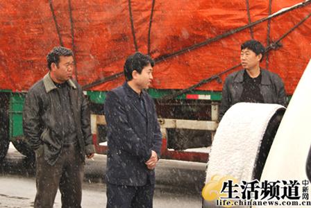 往四平的路上,吉林慈善會汲壽平主任(中)風(fēng)雪同行
