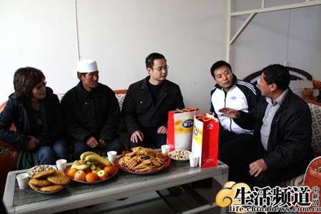 在蘭成明家,銀川市扶貧辦主任向雅士利集團(tuán)張培喜先生介紹情況