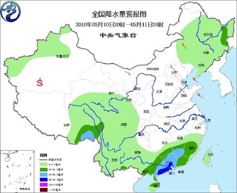 中央氣象臺5月10日17時發(fā)布未來三天全國天氣預報: