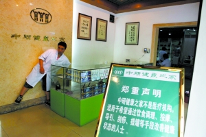 5月20日,中國中醫(yī)科學院東側,中研健康之家內(nèi)掛著一個牌匾,上面寫著“中研健康之家不是醫(yī)療機構,適用于希望通過飲食調(diào)理、按摩、導引、刮痧、拔罐等手段改善健康狀態(tài)的人士!