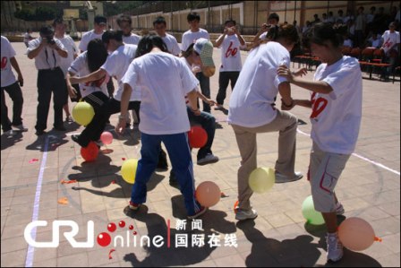 本次活動(dòng)由中國駐埃及大使館贊助,埃及愛資哈爾大學(xué)中國留學(xué)生會(huì)主辦。來自埃及各個(gè)大學(xué)約300名中國各民族留學(xué)生參加了籃球、足球、踩氣球、拔河、“小馬過河”、“袋鼠夾球”等多項(xiàng)競(jìng)技。(方文軍)