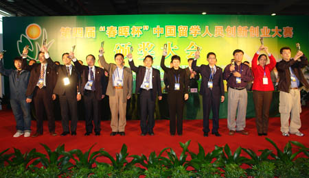 中新網(wǎng)12月28日電 據(jù)教育部留學(xué)服務(wù)中心網(wǎng)站消息,12月26日,由教育部、科技部聯(lián)合主辦的第四屆“春暉杯”中國(guó)留學(xué)人員創(chuàng)新創(chuàng)業(yè)大賽頒獎(jiǎng)儀式在第十二屆中國(guó)留學(xué)人員廣州科技交流會(huì)上舉行,共有167名參加大賽的入圍者分獲一等獎(jiǎng)、二等獎(jiǎng)和優(yōu)秀獎(jiǎng)。