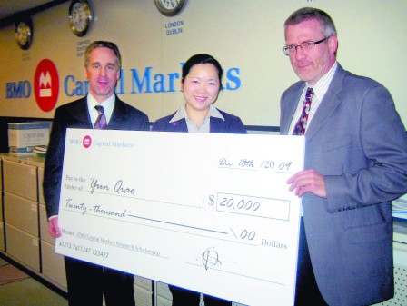 中新網(wǎng)1月15日電 據(jù)加拿大《明報(bào)》報(bào)道,加拿大滿地可銀行(BMO)一年一度的“資本市場(chǎng)高級(jí)研究獎(jiǎng)學(xué)金”已于日前公布了評(píng)選結(jié)果,約克大學(xué)數(shù)學(xué)和統(tǒng)計(jì)學(xué)博士生,中國(guó)留學(xué)生喬云(Yun Qiao)憑借其博士論文贏得此項(xiàng)殊榮,獲得由該銀行頒發(fā)的2萬(wàn)元獎(jiǎng)學(xué)金。