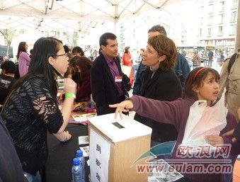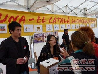 加泰羅尼亞語(yǔ)保護(hù)協(xié)會(huì)在SANT JORDI當(dāng)天也組織了一系列的活動(dòng),這些活動(dòng)也得到巴塞羅那中國(guó)學(xué)生學(xué)者聯(lián)誼會(huì)的積極參與。23日早上在VILATOMAT 2號(hào)的某個(gè)公立小學(xué)里,巴塞羅那中國(guó)留學(xué)生黃星星、張志軍、周子恒、項(xiàng)天宇、徐忱同學(xué)等人就積極參加他們的一系列活動(dòng)。當(dāng)天下午加泰羅尼亞語(yǔ)協(xié)會(huì)在市中心的大學(xué)廣場(chǎng)搭建了臨時(shí)活動(dòng)地點(diǎn),同時(shí)也給巴塞羅那中國(guó)學(xué)生學(xué)者聯(lián)誼會(huì)一個(gè)宣傳自己的“攤位”。熱情的中國(guó)留學(xué)生們除了教過往的當(dāng)?shù)厝思靶∨笥褜懼形拿忠酝,小書法家張志俊同學(xué)用中文寫了一些字畫,并剪裁成漢字“拼圖”,讓當(dāng)?shù)氐男『⒆觽兤粗形淖郑@些小孩子在玩樂之余,對(duì)中文產(chǎn)生了更加濃厚的興趣,留學(xué)生們借著這個(gè)活動(dòng),在推加泰蘭語(yǔ)影響力的同時(shí)也提高了中文的知名度。除此之外,中國(guó)留學(xué)生們不忘青海地震,還設(shè)立了專門的籌款箱,為青海地震籌款,在同學(xué)們的積極介紹下,路過的民眾都投下或多或少的零錢或紙幣,晚上活動(dòng)結(jié)束的時(shí)候中國(guó)留學(xué)生為青海地震籌得捐款103歐元。