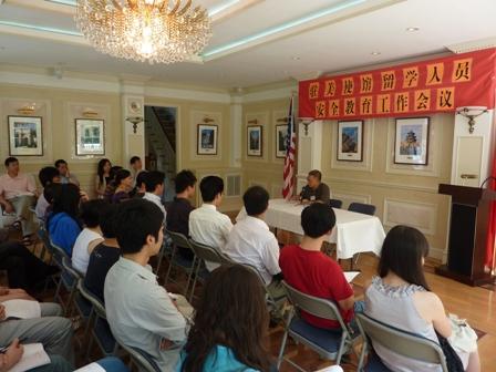 駐美使館領(lǐng)事部陳雄風(fēng)參贊在會(huì)議上介紹了領(lǐng)事保護(hù)協(xié)助的內(nèi)容,希中國(guó)留學(xué)人員在美日常生活中,要從相互尊重、真誠(chéng)相待、寬容大度、嚴(yán)于律已、把握分寸、尊重差異、積極融入、文明做人、心系祖國(guó)的態(tài)度出發(fā),遵守法律,學(xué)會(huì)與人相處,減少安全隱患。他還介紹了在需要時(shí),如何向中國(guó)外交機(jī)構(gòu)提出領(lǐng)事保護(hù)協(xié)助申請(qǐng)的具體做法和要求。