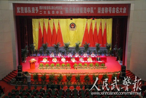 日前,武警部隊(duì)授予武警四川總隊(duì)涼山支隊(duì)四中隊(duì)“抗洪搶險(xiǎn)模范中隊(duì)”榮譽(yù)稱號(hào)命名大會(huì)在總隊(duì)禮堂隆重舉行。