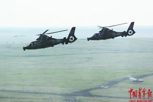 密集的槍響漸漸被隆隆的炮聲掩蓋?罩,直-9武裝直升機(jī)和米-24直升機(jī),對(duì)敵裝甲目標(biāo)實(shí)施精確火力打擊。殲轟-7A和蘇-24呼嘯著將炸彈準(zhǔn)確傾瀉到靶標(biāo)上,腳下的大地在震顫,營(yíng)地周邊煙柱四起。
