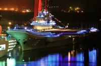 中國海軍16號航母遼寧艦已經(jīng)正式交付,而在國慶期間,16號艦的甲板邊緣和艦島上也亮起彩燈,分外壯觀。(來源:環(huán)球網(wǎng))