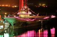 網(wǎng)友拍我航母平臺“遼寧艦”節(jié)日期間霓虹燈閃亮裝點(diǎn)海灣