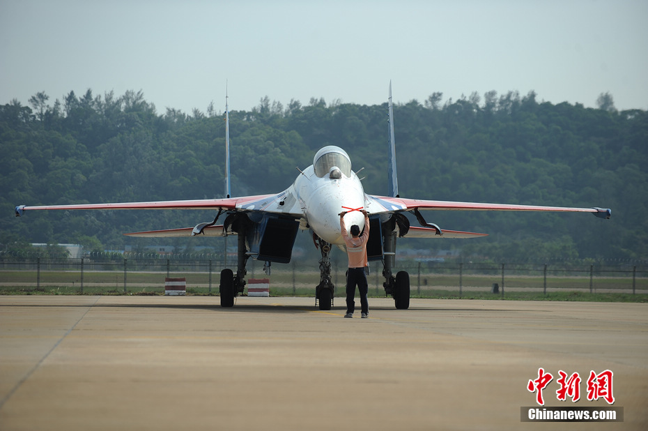 俄羅斯勇士飛行表演隊蘇27抵達(dá)珠海航展現(xiàn)場。陳海峰 攝