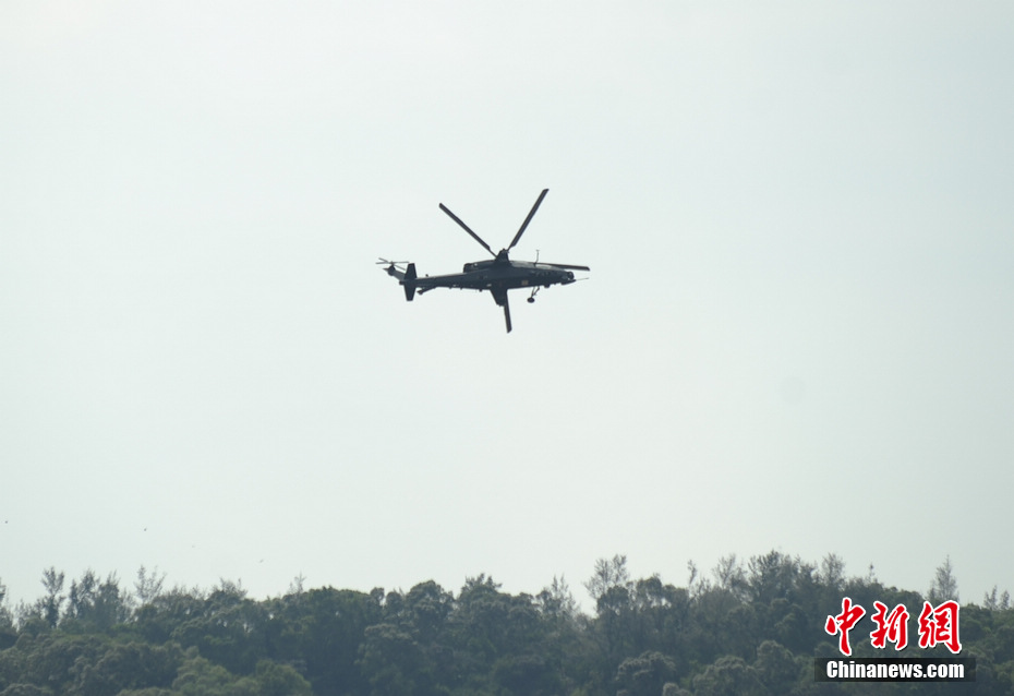 中新網(wǎng)珠海11月11日電(陳海峰) 11日上午,中國(guó)武直10武裝直升機(jī)首次在珠海上空公開(kāi)亮相,并進(jìn)行了適應(yīng)性飛行訓(xùn)練,其做出倒飛、低空盤(pán)旋、萊維斯曼翻轉(zhuǎn)等多個(gè)精彩動(dòng)作,在短暫現(xiàn)身后離開(kāi)航展上空。
