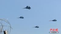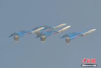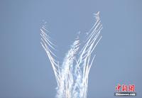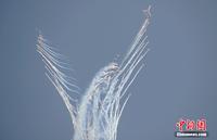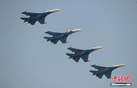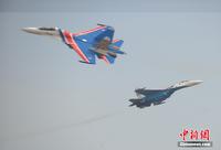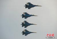中新網(wǎng)珠海11月12日電(陳海峰)12日下午兩點(diǎn)整,俄羅斯勇士飛行表演隊(duì)5架表演機(jī)準(zhǔn)時(shí)啟動(dòng)進(jìn)行飛行表演,展示了“加力盤(pán)旋”、“躍升半滾倒轉(zhuǎn)”、“向上開(kāi)花”、“雙機(jī)對(duì)沖”等精彩動(dòng)作,為觀眾提供了一場(chǎng)視覺(jué)盛宴,體現(xiàn)了蘇27優(yōu)異的機(jī)動(dòng)性能。