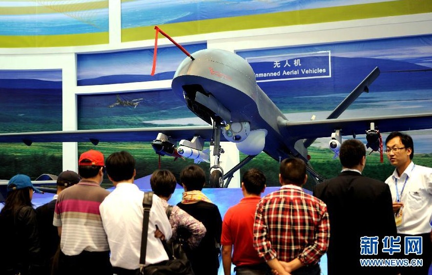 珠海航展上展出的彩虹4(CH-4)無人機系統(tǒng)吸引了眾多觀眾的目光(11月14日攝)。當(dāng)日,在第九屆中國國際航空航天博覽會上,由中國航天科技集團公司第十一研究院研發(fā)的彩虹4(CH-4)無人機系統(tǒng)成為觀眾矚目的焦點。據(jù)該院王曉軍副院長介紹,彩虹4無人機翼展達18米,是目前國內(nèi)掛載能力最強、飛行性能最優(yōu)的無人機,適合執(zhí)行邊境巡邏、海島守護、反恐作戰(zhàn)、應(yīng)急通訊等多種任務(wù),該機型的綜合察打能力已經(jīng)超越同類型的美國“捕食者”無人機系統(tǒng)。新華社記者 劉大偉 攝
