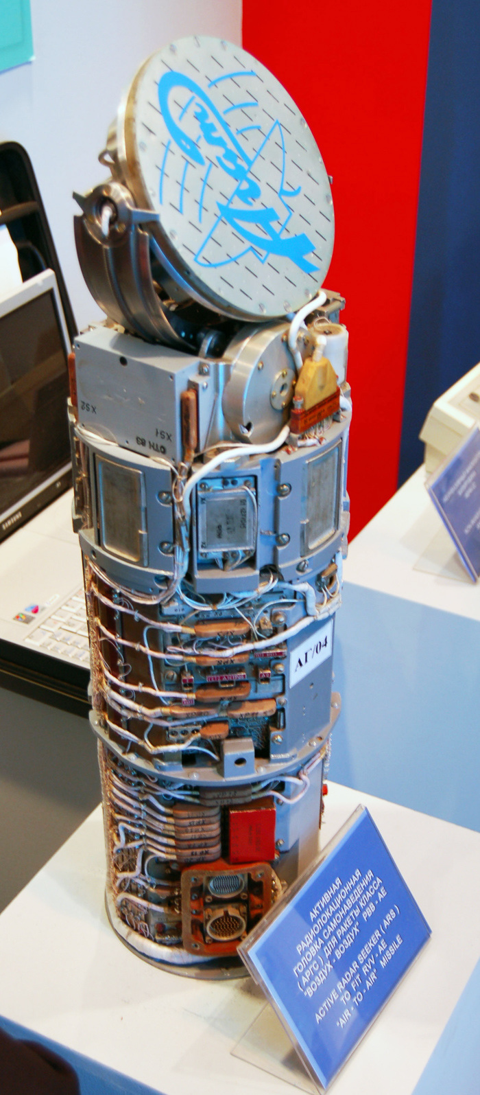 據(jù)俄羅斯媒體稱,上世紀(jì)80年代研制而成的R-77中程主動(dòng)雷達(dá)制導(dǎo)導(dǎo)彈能夠?qū)崿F(xiàn)發(fā)射后不管,最初同樣由烏克蘭“阿爾焦姆”公司生產(chǎn),但在蘇聯(lián)解體后停產(chǎn)。90年代中期俄羅斯“信號(hào)旗”設(shè)計(jì)局自行組織批量生產(chǎn)出口型R-77導(dǎo)彈,代號(hào)RVV-AE,使用改進(jìn)型自導(dǎo)彈頭。隨后RVV-AE導(dǎo)彈成為所有蘇-27和米格-29系列新型和改型戰(zhàn)機(jī)不可分割的一部分,成為戰(zhàn)術(shù)導(dǎo)彈武器集團(tuán)的出口拳頭產(chǎn)品,創(chuàng)造了豐厚的外匯收入,其中僅向中國就供應(yīng)了大約1500枚,向印度供應(yīng)了至少800枚,現(xiàn)在還在繼續(xù)供應(yīng)。另外還在向其他一些國家出口。(圖為R-77的導(dǎo)引頭,它也是PL-12的技術(shù)來源之一)