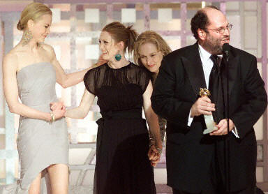 在競(jìng)爭(zhēng)激烈的劇情類最佳影片項(xiàng)目中,與《時(shí)時(shí)刻刻》一同入圍的還有《紐約黑幫》、《心的方向》、《魔戒二部曲:雙城奇謀》以及《戰(zhàn)地琴人》。其中雖然有掀起全球票房賣座旋風(fēng)的《魔戒二部曲》,最后還是由《時(shí)時(shí)刻刻》勝出。