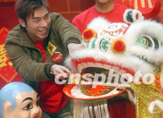 香港歌手許志安一月二十日出席“麥當(dāng)勞TM新年開(kāi)心成雙”醒獅點(diǎn)睛儀式。錢(qián)興強(qiáng) 攝
