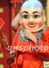 香港麥當(dāng)勞一月二十日在銅鑼灣時(shí)代廣場(chǎng)舉行“麥當(dāng)勞TM新年開(kāi)心成雙”活動(dòng)。圖為“大頭娃娃”賀新春。錢(qián)興強(qiáng) 攝