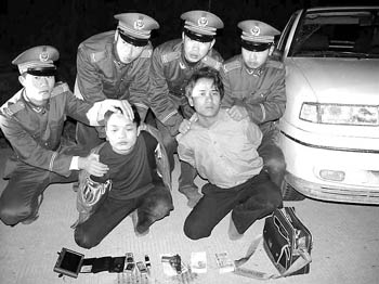 中新網(wǎng)1月30日電 28日下午5時(shí)10分,5名持槍劫匪在福建省長(zhǎng)樂(lè)市持槍搶劫得逞后駕車(chē)逃逸,接到舉報(bào)后的長(zhǎng)樂(lè)松下邊防所官兵駕車(chē)緊追當(dāng)場(chǎng)擒獲兩劫匪;當(dāng)天24時(shí)許,在逃的另3名劫匪在福清市落網(wǎng)。至此,該起發(fā)生在長(zhǎng)樂(lè)市城關(guān)的惡性持槍搶劫大案成功告破,5名劫匪無(wú)一漏網(wǎng)。