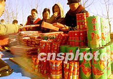 圖:山東農(nóng)村年貨市場(chǎng)上爆竹不禁賣
