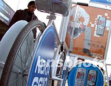 北京春節(jié)前夕的手機市場更加火爆,一家手機公司別出心裁的利用自行車在街頭做起了廣告。作者:杜洋