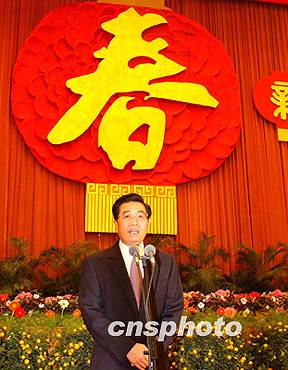 中共中央總書記胡錦濤主持團(tuán)拜會(huì)。他代表中共中央、國(guó)務(wù)院,向全國(guó)各族人民,向廣大工人、農(nóng)民、知識(shí)分子和干部,向人民解放軍指戰(zhàn)員、武警官兵和公安干警,向各民主黨派和全國(guó)工商聯(lián)、各人民團(tuán)體和各界人士,表示節(jié)日的問(wèn)候。他向香港特別行政區(qū)同胞、澳門特別行政區(qū)同胞、臺(tái)灣同胞、海外僑胞,致以良好的祝愿,并向關(guān)心和支持中國(guó)現(xiàn)代化建設(shè)的國(guó)際友人,表示衷心的感謝。他祝大家新春愉快,身體健康,闔家幸福!