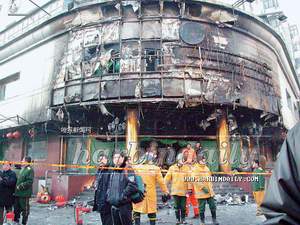 2003年2月2日下午,哈爾濱道外區(qū)天潭酒店發(fā)生特大火災(zāi),造成33人死亡。事故原因日前初步認(rèn)定:直接原因?yàn)榫频陠T工違規(guī)操作,明火向煤油爐內(nèi)注油引發(fā)燃爆。目前,該酒店的法人代表及經(jīng)營(yíng)者已被刑事拘留,有關(guān)部門(mén)已凍結(jié)其賬戶(hù)和財(cái)產(chǎn)。