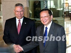鮑威爾說,美中關(guān)系近一年多來取得很大進(jìn)展,雙方在高層對話、人員交往、反恐、經(jīng)貿(mào)等領(lǐng)域進(jìn)行了很好的合作。切尼副總統(tǒng)期待著不久訪問中國。美方希望進(jìn)一步加強(qiáng)與中國的合作關(guān)系,美方意識到臺灣問題對中國的重要性,美方將堅持一個中國的政策,遵守美中三個聯(lián)合公報,不支持任何搞“臺灣獨(dú)立”的活動。