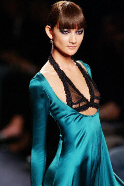 2003年3月10日,在法國巴黎舉行的2003至2004年秋冬時裝展上,模特現(xiàn)場展示了Yves Saint Laurent的新款服飾.