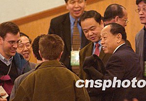 圖:外國(guó)記者祝賀李肇星出任外交部長(zhǎng)
