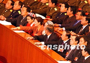 人大代表們?nèi)率巳赵诒本﹨⒓邮畬萌舜笠淮螘h閉幕大會上按表決器,通過有關(guān)報(bào)告的決議。作者:賈國榮