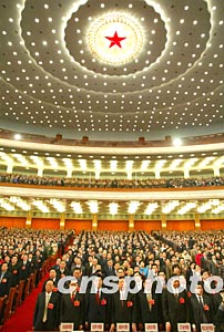 圖:十屆全國人大一次會(huì)議在國歌聲中閉幕