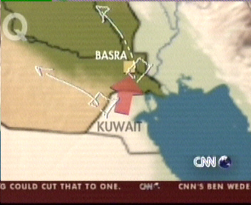 第3師出發(fā)后不久就與伊軍交上了火,據(jù)前衛(wèi)部隊(duì)發(fā)回的無(wú)線電,他們是與三輛伊軍裝甲運(yùn)兵車(chē)遭遇的,經(jīng)過(guò)短短幾分鐘的混戰(zhàn),他們?nèi)珰灹诉@股伊軍。第3步兵師推進(jìn)的速度異常之快,從夜里到天亮短短數(shù)小時(shí),他們就已經(jīng)深入伊境內(nèi)150公里,平均以每小時(shí)30英里的速度推進(jìn)。第5步兵師一名指揮官向記者透露說(shuō),他們師和兄弟部隊(duì)的任務(wù)就是在最短時(shí)間內(nèi)奪取兩河流域的戰(zhàn)略要地,隨后對(duì)巴格達(dá)實(shí)施合圍。