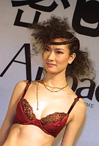 圖:第八屆中國(guó)國(guó)際內(nèi)衣展 模特展示性感時(shí)尚內(nèi)衣(5)