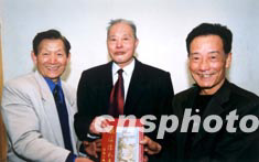 金門陳氏宗親會理事長陳添丁(左一)四月十四日在廈門接受廣東汕尾市陳氏的族譜,該族譜對臺灣陳氏幾百年的歷史有詳細(xì)描述。作者:陳勇