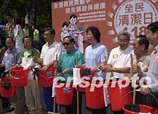 為掀起全民自覺防病熱潮,由澳門民政總署和衛(wèi)生局以及街總等十一個社團機構(gòu)共約三千人參加的“全民清潔日”活動十八日在澳門佑漢公園舉行啟動儀式,圖為儀式結(jié)束后,與會的政府和社團負責(zé)人帶頭參加街區(qū)的清潔衛(wèi)生。李剛 攝