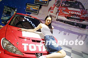 四月舉行的第十屆上海國際汽車工業(yè)展覽會上,一輛新款標致賽車在靚麗少女的“陪伴”下閃亮登場。作者:湯彥俊