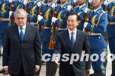 中新社北京四月二十五日電(記者姜知然)中國國務(wù)院總理溫家寶二十五日在人民大會堂與法國總理拉法蘭舉行會談時表示,拉法蘭總理此次訪華意義重大,對中法關(guān)系的深入發(fā)展將起到積極促進(jìn)作用。