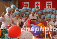 十二日,北京友誼醫(yī)院的白衣天使們向戰(zhàn)斗在非典一線的戰(zhàn)友送去國(guó)際護(hù)士節(jié)的節(jié)日問候。迄今為止,北京友誼醫(yī)院已先后向抗擊“非典”一線派出一百三十多名醫(yī)務(wù)工作者。中新社記者:武仲林