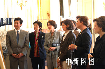 拉法蘭總理夫人一進(jìn)大門,就對迎候的中國駐法大使吳建民和夫人施燕華公參說:“訪問中國是我的一個愿望。由于中國目前發(fā)生的特殊情況,我沒能于上月隨同丈夫一起訪華,感到非常遺憾。今天我把原本要一同訪華的所有夫人們帶到這里,參觀巴黎的中國---新近成立的巴黎中國文化中心,也是了卻一個心愿!