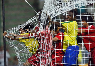 比賽完場補時階段,羅納爾迪尼奧向土耳其門將魯斯圖要球,但魯斯圖抱住球拖延時間。