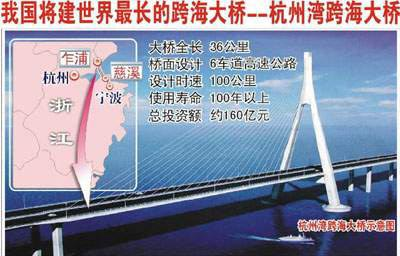 “杭州灣跨海大橋的建設(shè),是寧波和浙江接軌大上海、融入“長(zhǎng)三角”、走向國(guó)際化的重大舉措……”寧波市市長(zhǎng)金德水自豪地評(píng)價(jià)了這座長(zhǎng)36公里的跨海大橋。